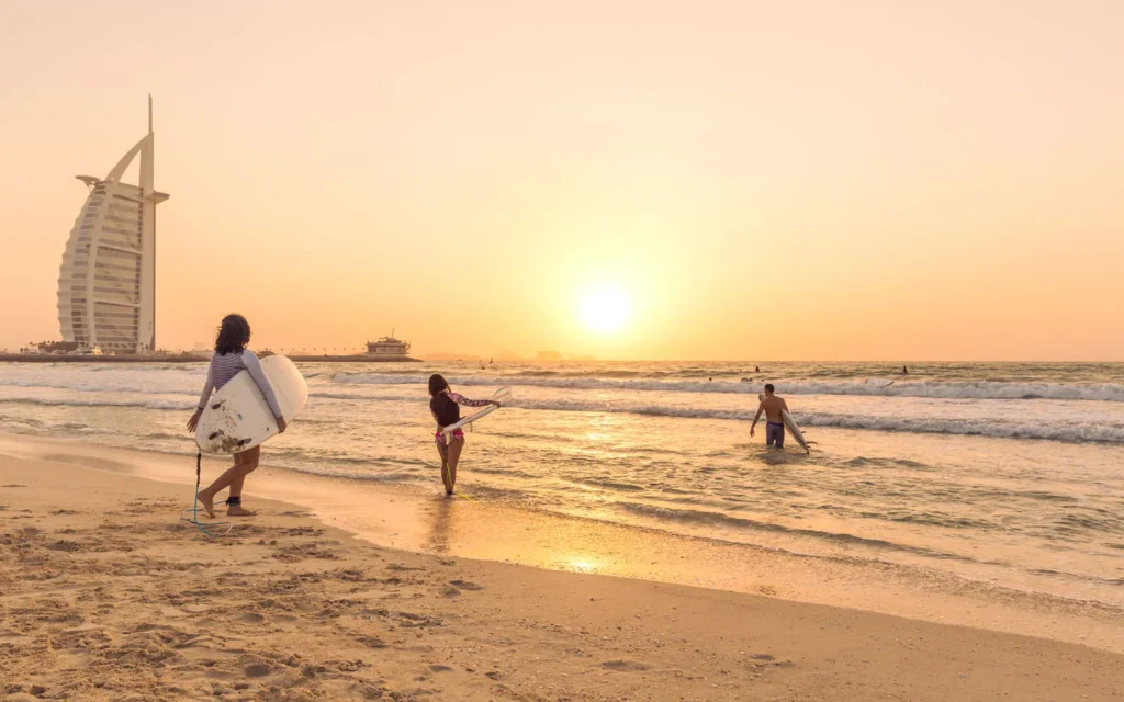 Sunset Beach is one of the best beaches in Dubai for sunset views, offering iconic Burj Al Arab backdrops. It’s quieter and peaceful.
